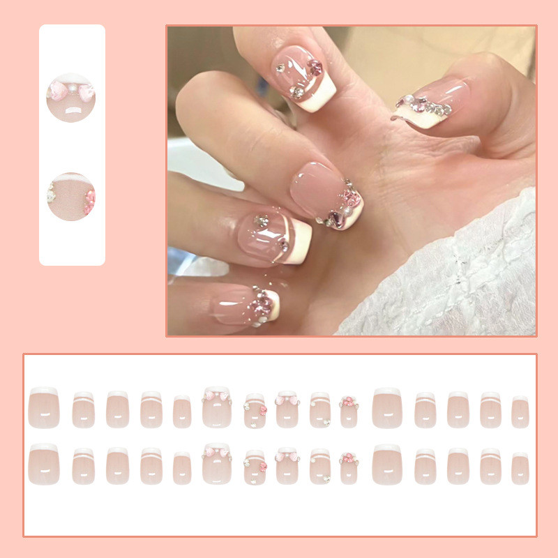 New%202025%2024Pcs%20Simple%20Heart%20Pearl%20Crystal%20Zircon%20Fake%20Nails%20with%20Glue%20DIY%20Art%20Design%20False%20Nails%20Wearable%20Nails%20Stylish%20Pattern%20Artificial%20Nails%20-%20Image%203