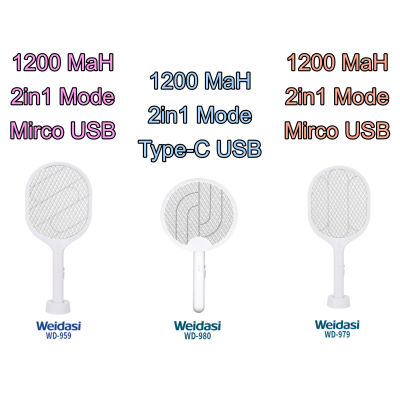 Weidasi Mosquito Rechargeable 1200 MaH Bat with Lure Light Insect bugs Lamp Stand Holder USB Charging Cable Included Multifunction Electric Swatter 959 979 980