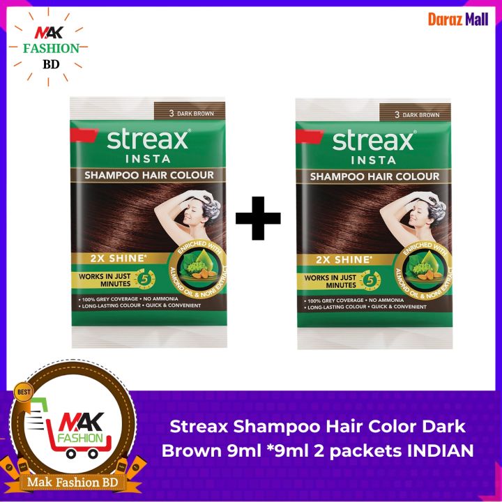 Streax Shampoo Hair Color Dark Brown 9ml *9ml 2 packets