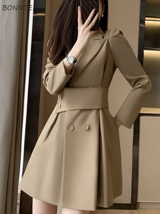 Office Lady's Long Sleeve Dresses Women Young Elegant Fashion Notched Autumn New Simple Chic High Waist Korean Version All-match