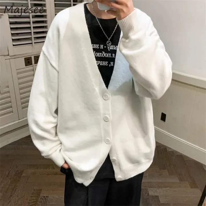 Cardigan Men V-neck Simple Solid Loose Autumn Newly Fashion Kpop Vintage Outwear All-match Leisure Chic Preppy Style Knitted Ins