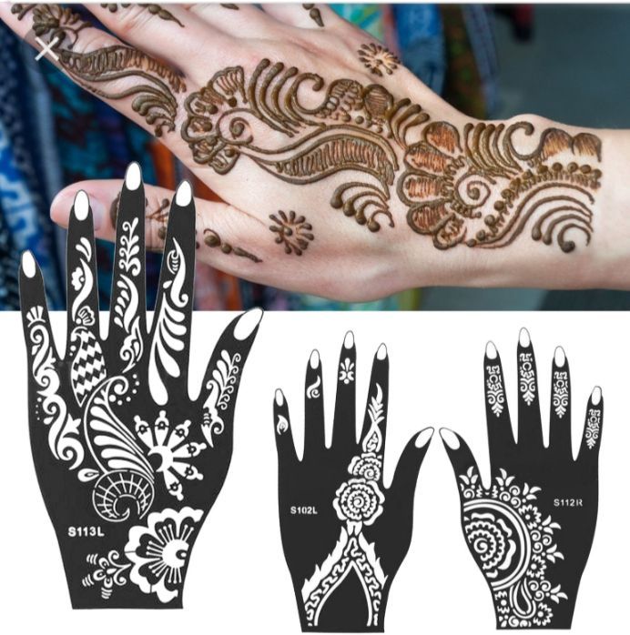 Henna sticker simple design for hand stencils 1pair (Randomly)