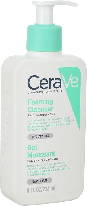 CeraVe Foaming Cleanser for Normal to Oily Skin with Niacinamide and 3 Essential Ceramides (France) - 236ml