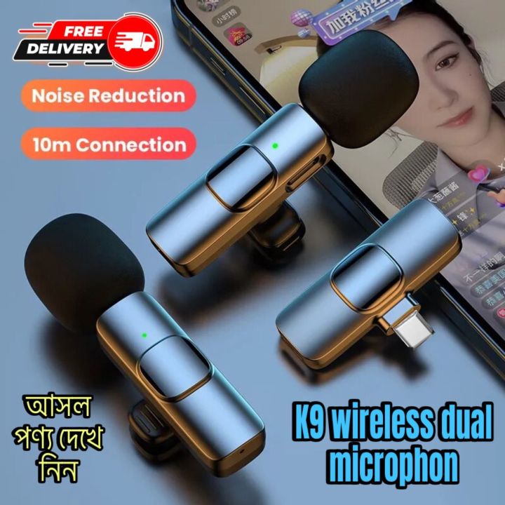 K9 Wireless Type C Dual Microphone Professional Noise Cancelling Lapel Mic for Content Creators (Type C)