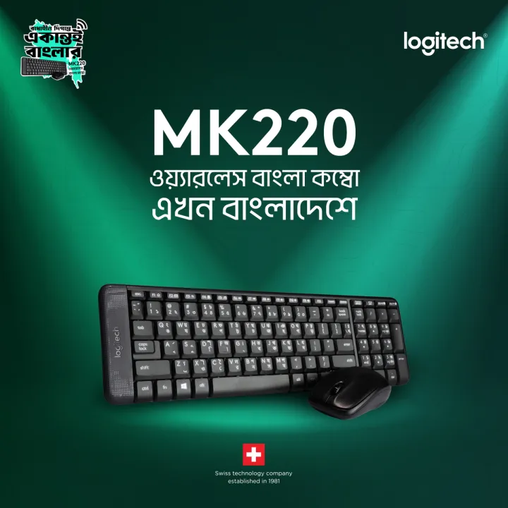 Logitech MK220 Compact Wireless Keyboard and Mouse Combo for Windows, 2.4 GHz Wireless with Unifying USB-Receiver, 24 Month Battery, Compatible with PC, Laptop - Bangla Layout
