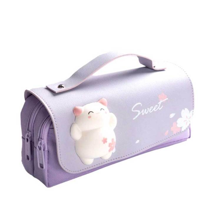 (New) cute cat depreion double-layer pencil bag portable girl kawaii tationery