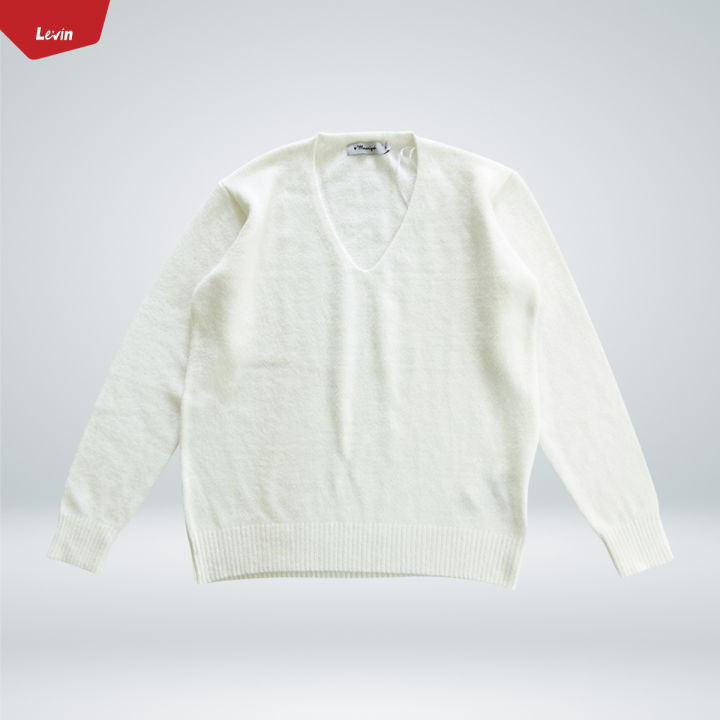 Womens V-Neck Long Sleeve Off-White Winter Sweater From Levin