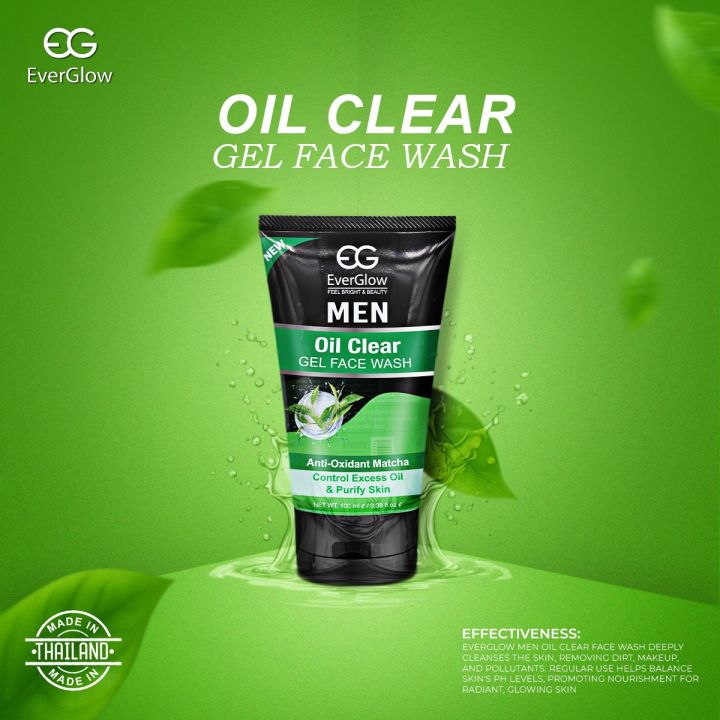 Everglow Oil Clear Men Face Wash Gel - 100 ML - Made in Thailand