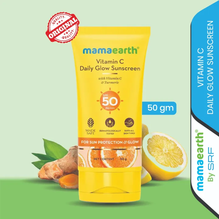 Mamaearth Vitamin C Daily Glow Sunscreen with Vitamin C & Turmeric for Sun Protection & Glow - 50 g