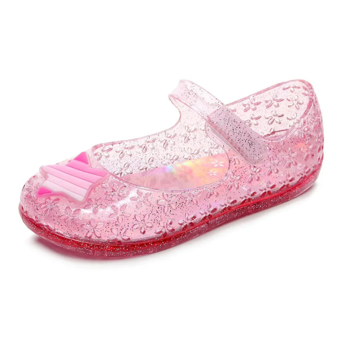 Children's Cute Transparent Sandals Princess Shoes Girls Star Pattern Hollow Out Flower Waterproof Anti Slip Soft Flat Shoes