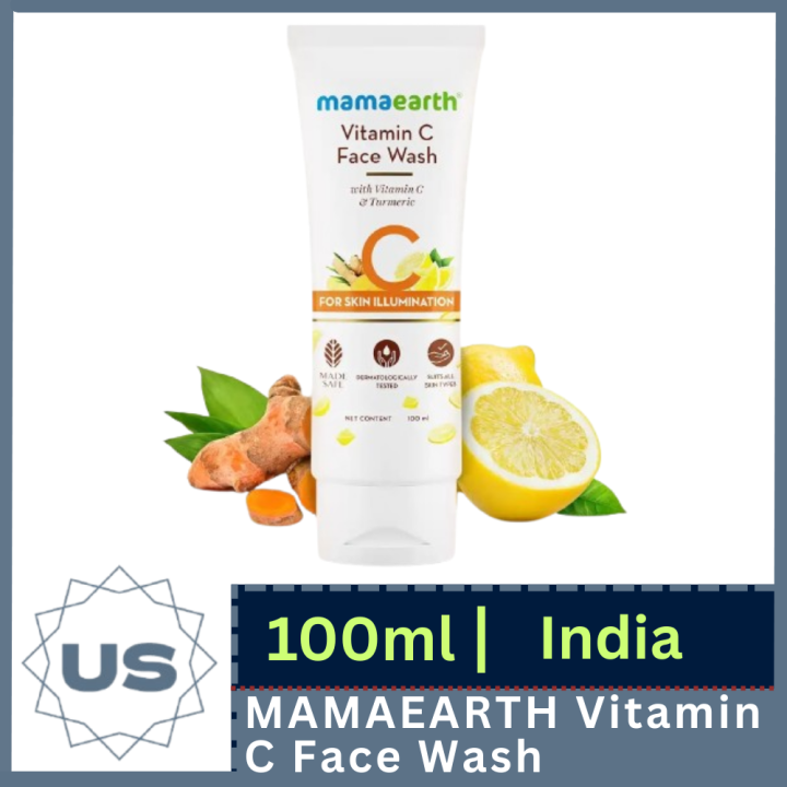 MAMAEARTH Vitamin C Face Wash for Skin Illumination | Gentle & Hydrating Dead Skin Exfoliator with Turmeric | Sulfate & Paraben Free I 100ml I India