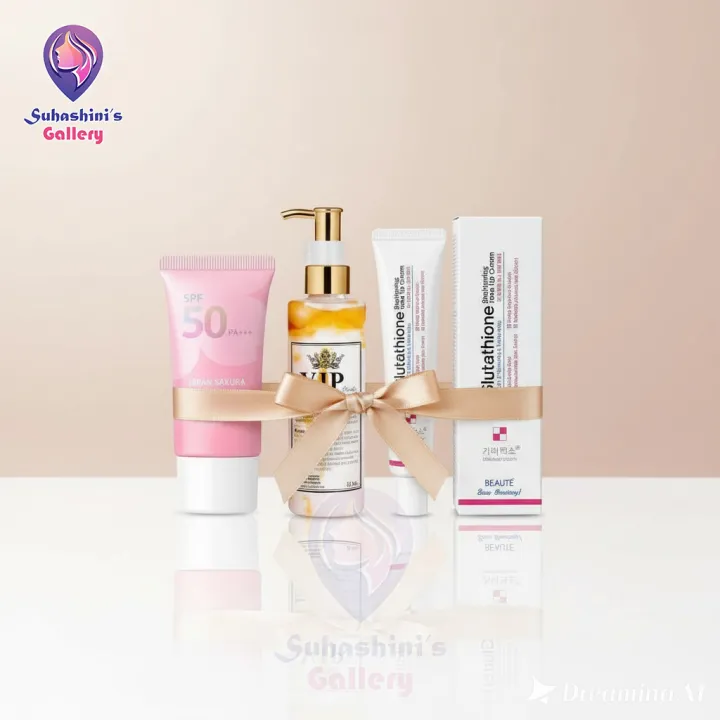 VIP Glow Brightening Pack – KEM COT VIP Body Lotion + Sakura Sunscreen + Glutathione Cream | Full Body Whitening & Skin Brightening Combo
