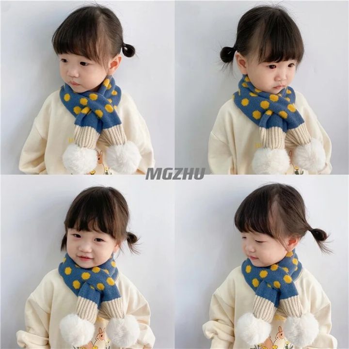 1-7Years scarf children Autumn Winter Toddler Boys Girls Pompom Cross Knitting Wool Scarves Baby Neck warmer Cartoon Warm Scarfs