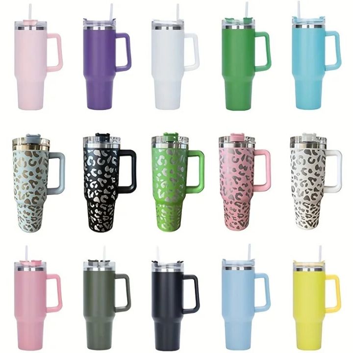 1 Leopard Print Insulated Tumbler - 40oz Stainless Steel Travel Cup With Straw And Handle For Outdoor Sports And Camping Water Bottles