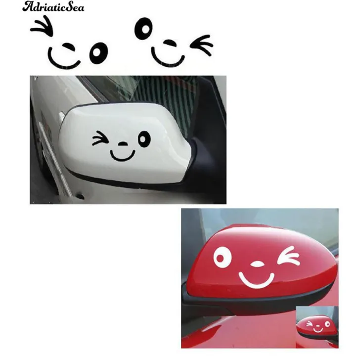 ❂↬1 Pair Lovely Smiling Face Car Rearview Mirror Sticker Reflective Decal Decor