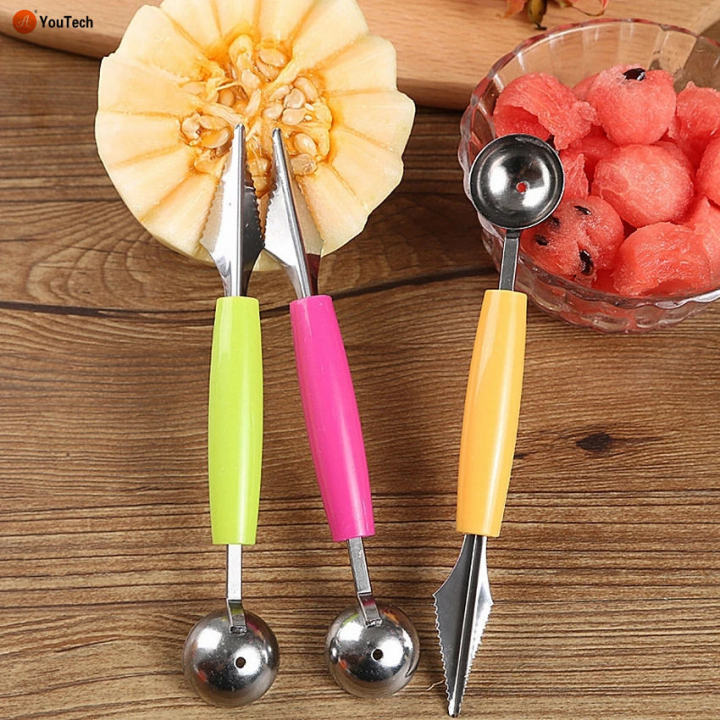 1 Pcs Double-Headed Stainless Steel Fruit Carving Knife Handheld Cutting Watermelon Fruits PP Plastic Fruit Knife Platter Vegetable