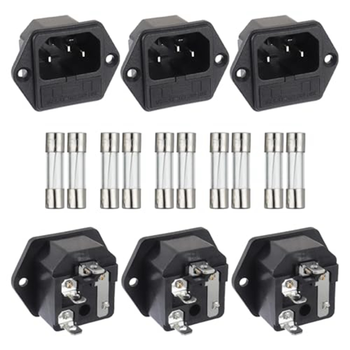 1 Set Black AC 250V 10A 2 in 1 Mount Inlet Module Plug Socket Power Entry Connector Male Blades with 10A Fuse(Pack of 6Pcs)