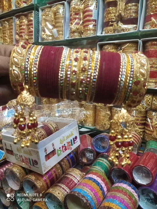 1 Set New Indian Bridal Jhumka Pekhom Bangles/Churi Package For Girls-(1 full set)