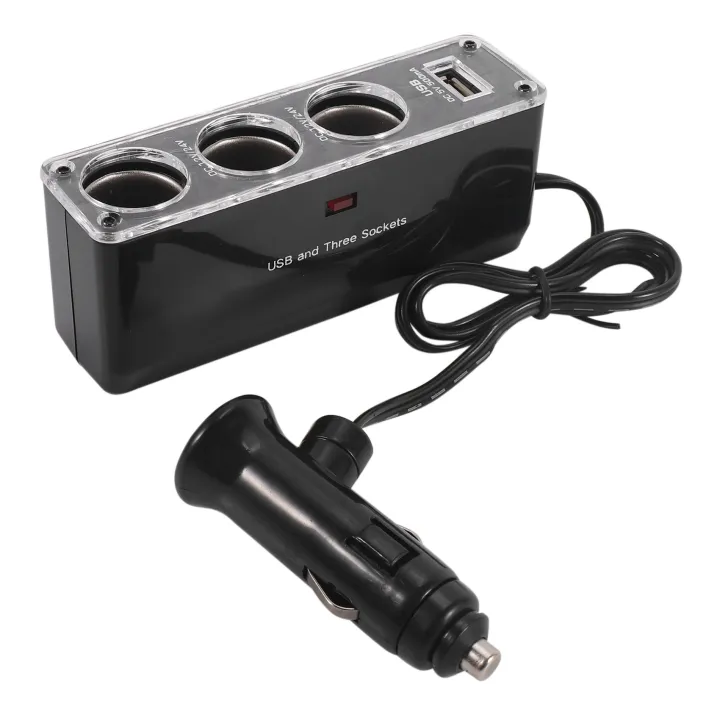 【100%-New】 3 WAY MULTI SOCKET CAR SPLITTER USB PLUG CHARGER 12V/24V Triple ADAPTER With USB Port