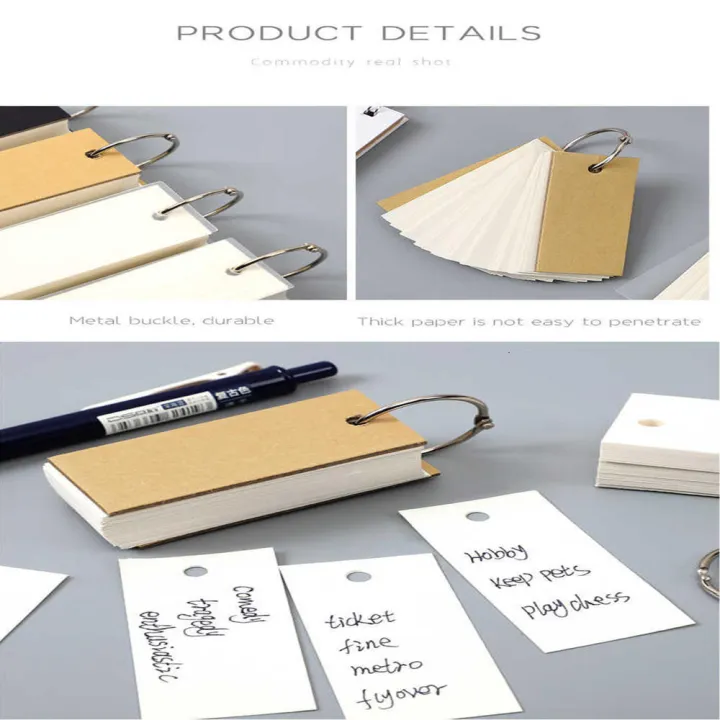 100pcs/box Handwritten Card Notepads Cowhide Color Word Card Kawaii Memo Pad Blank Kraft Paper Cute Ring Buckle Letter Card4x7cm