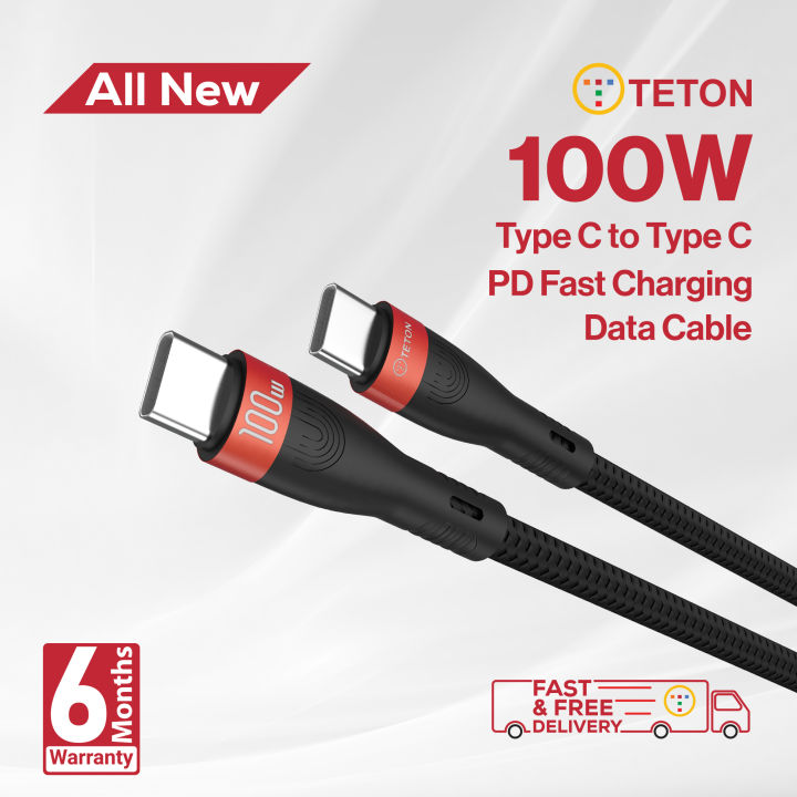 Teton Type C to Type C Cable 100W 5A High current PD fast Charging for Iphone 17/16/15/ Samsung /Android