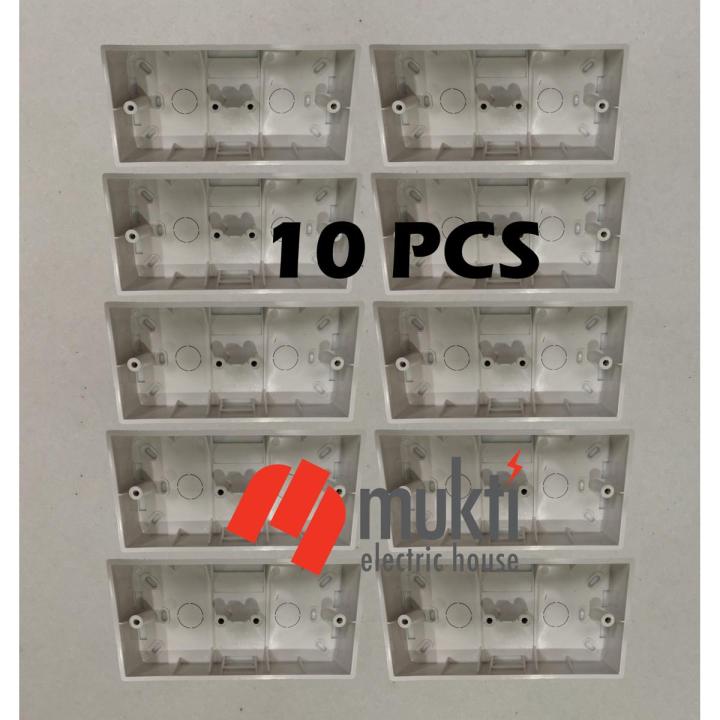10pcs Two Gang China Made MK Type White PVC Junction Box for Electrical Square Edge Premium Caliber Plastic Wall Switch Back Cover 2 Part 2Gang