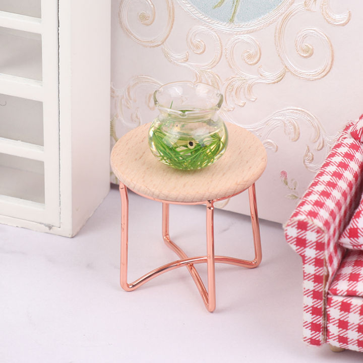 1:12 Dollhouse Miniature Coffee Table Iron Round Dining Table Desk Model Toys Layor