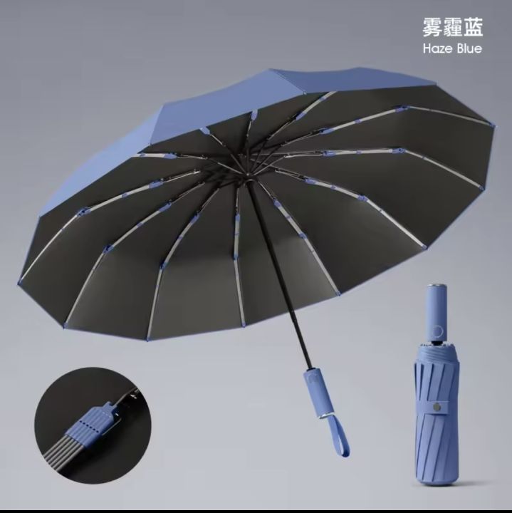 12 Ribs High Quality Auto-Folding Wooden Handle Umbrella Reinforced Dual-Use Windproof Large Sun Rain Umbrella Men And Women