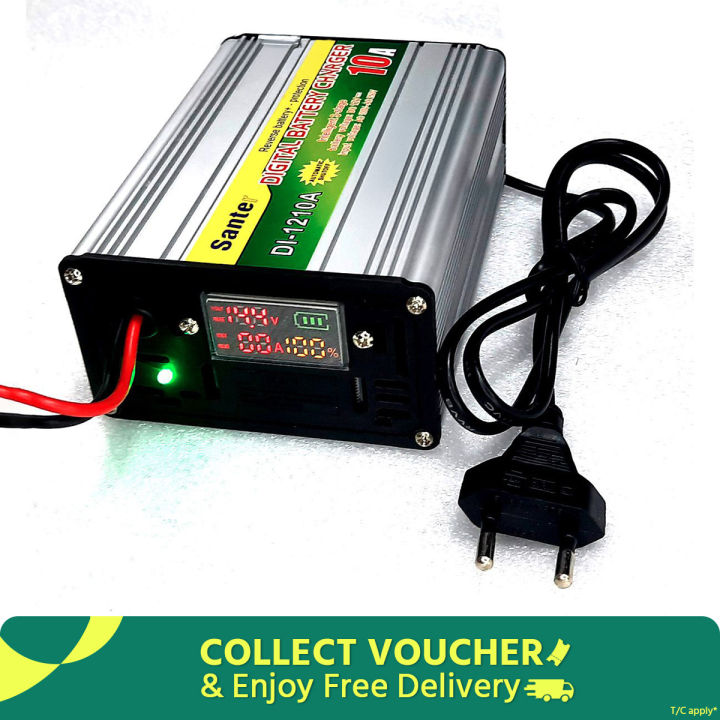 12v 10A Digital Battery Charger - Full Auto Cut & Digital Display 12V 10Ah Battery Charger For Car Truck Autorickshaw Bikes IPS Industrial Battery