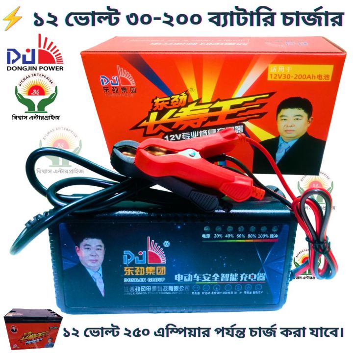 DJ 12V 30-200Ah Smart Heavy Duty Battery Charger | Lead Acid & Dry Cell Charger for Car, Auto Rickshaw, UPS & IPS | Professional Fast Repair Charger