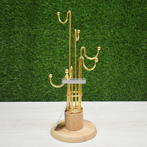 13.5 inch Metal Cup, Mug Stand with Wooden Base