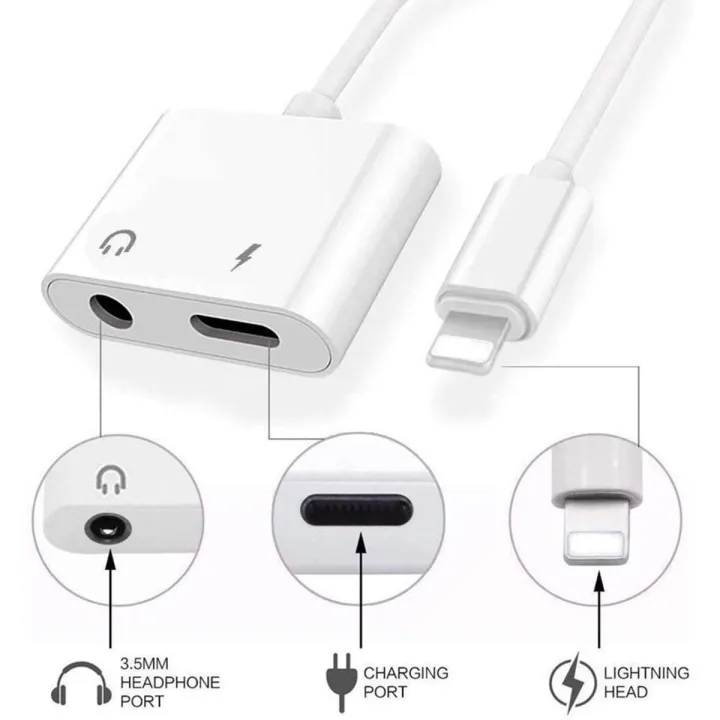 2 in 1 Dongle Splitter For Apple iPhone Dual Port Charger And Headphones Adapter With Cable. Audio Jack And Charge Converter