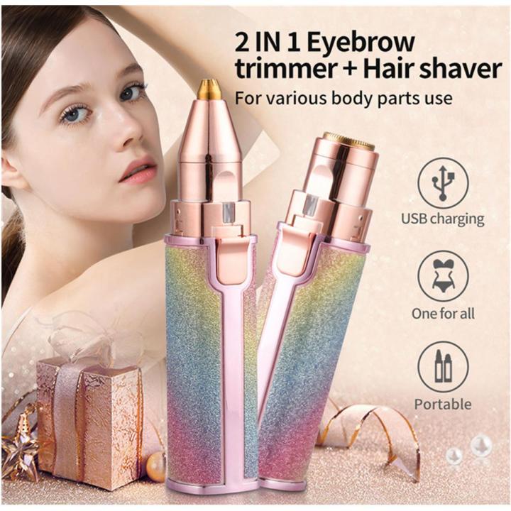 2 In 1 Electric Eyebrow Trimmer rechargeable Makeup Eye Brow Epilator For Women Shaver Razors Mini Portable Facial Hair Remover