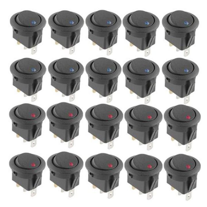 20 Pcs 12V 20A Amps On/Off/ 3 Position Terminal Round Rocker LED Toggle Switch Blue & Red
