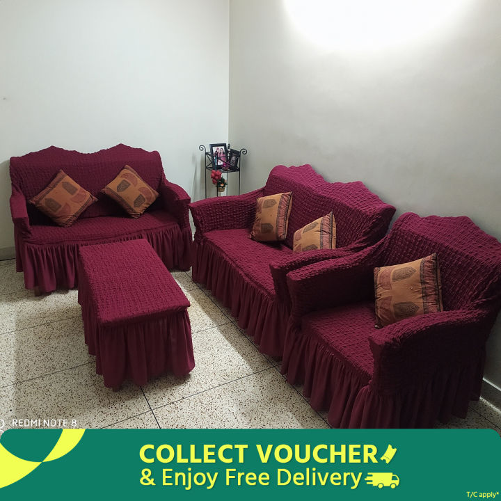 2+2+1 turkey spendix elstic kather sofa cover maroon colour