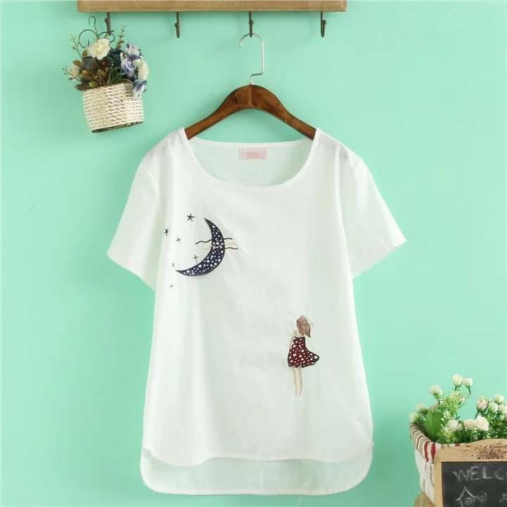 ফ্যাশন লেডিস সুতির ছোট হাতার ক্যাজুয়াল মেয়েদের প্রিন্ট নতুন টি-শার্ট (228219299) - 228219299