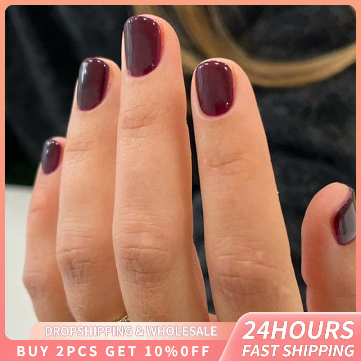 24pcs Short Kawaii Nails Brown Color Nails Press On Multi-Styles False Nail Patches Y2k French Detachable Nail Manicure Art