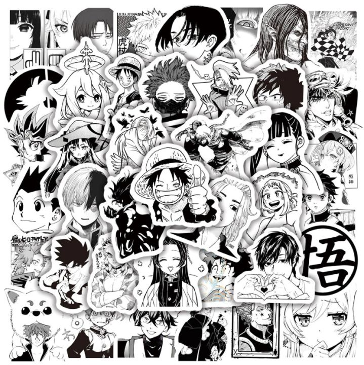 25Pcs/Set Mix Anime Black & White Randomly Graffiti PVC Waterproof Stickers For Luggage Skateboard Laptop - sticker