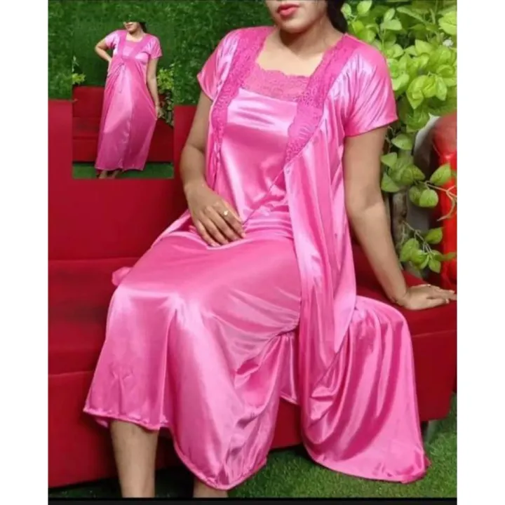 মহিলাদের জন্য দুই পার্টের সাটিন সলিড নাইটি সেট-নাইট পোশাক-মহিলাদের জন্য নাইট পোশাক - 294827185