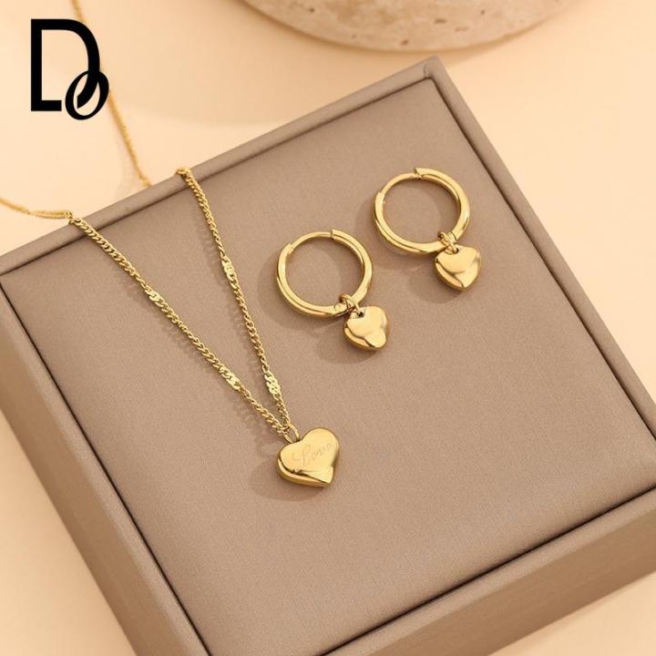 2Pc Buy 1 Take 1 Titanium Steel Korean Love Earrings Necklace Set Fashion Elegant No Fade Simple Jewelry Accessories Gifts for Gf