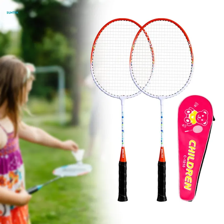 2Pcs Sports Badminton Racket Double Racquets with Carry Case Parentchild Interactive Toys Badminton Accessory for Kids for Game Lawn Outdoor