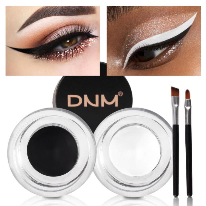 2pcs White + Black Gel Eyeliner Make Up Waterproof Cosmetics Set Eye Liner Makeup Eye Maquiagem With 2 Brushes Loser Lione