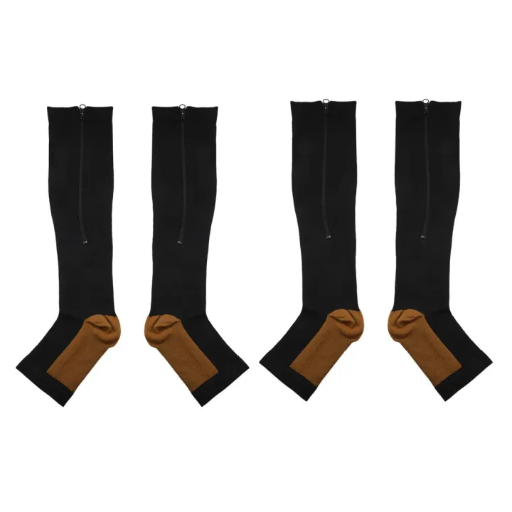 2X Compression Stockings Nylon Zipper Compression Sock Leg Knee Support Open Toe Varicose Veins Stretch Socks(Black)XXL