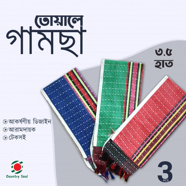 3 পিস বিভিন্ন ধরণের 3.5 হ্যাট ট্র্যাডিশনাল/দেশি খাঁটি সুতি/সুটি তোয়ালে গামসা/গামছা তোয়ালে _ ৩ পিশ ৩.৫ হাত দেশি সুতি তোলে গামা - towel