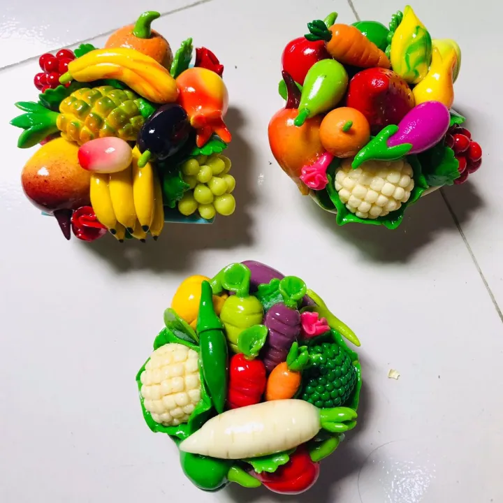 3 pieces mini bowl combo Miniature vegetables and fruits polymer clay handmade showpieces for women home decor kitchen item dining table or furniture decorations ideas for baby and housewife