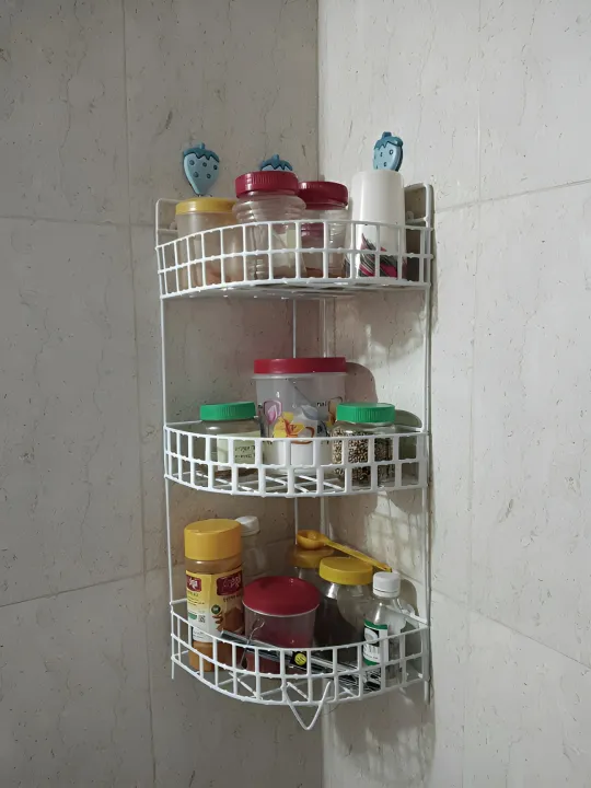 3 Steps Hanging Corner Storage Rack Organizer Kitchen Rack Furniture Space Savers - Maximize Space With This 3-Step Hanging Corner Storage Rack