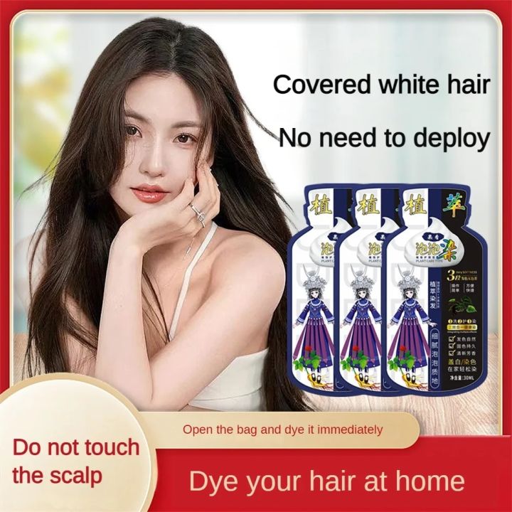 30ml Fashion Color Plant Bubble Hair Dye Coffee Chestnut Brown Hair Cream Cover White Hair Dye Special-shaped Bag Natural Tone
