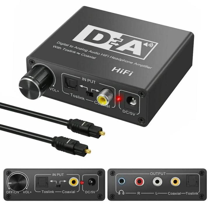 32-192KHz Hifi DAC Amp Digital To Analog Audio Converter RCA 3.5mm Jack Headphone Amplifier Toslink Optical Coaxial Output DAC