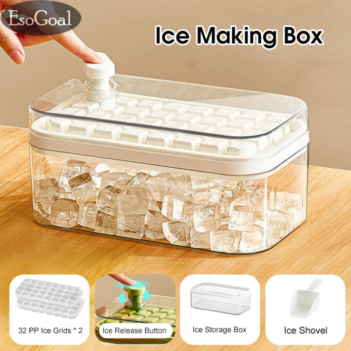 【3C VictoryEagle】EsoGoal Ice Lattice Double Layer Ice Lattice Cube Tray with Lid and Bin Two layer Freezer Ice Tray 64 Cell Freezer Ice Block Ice Cube Mold Ice Container for Chilling Cocktail Coffee