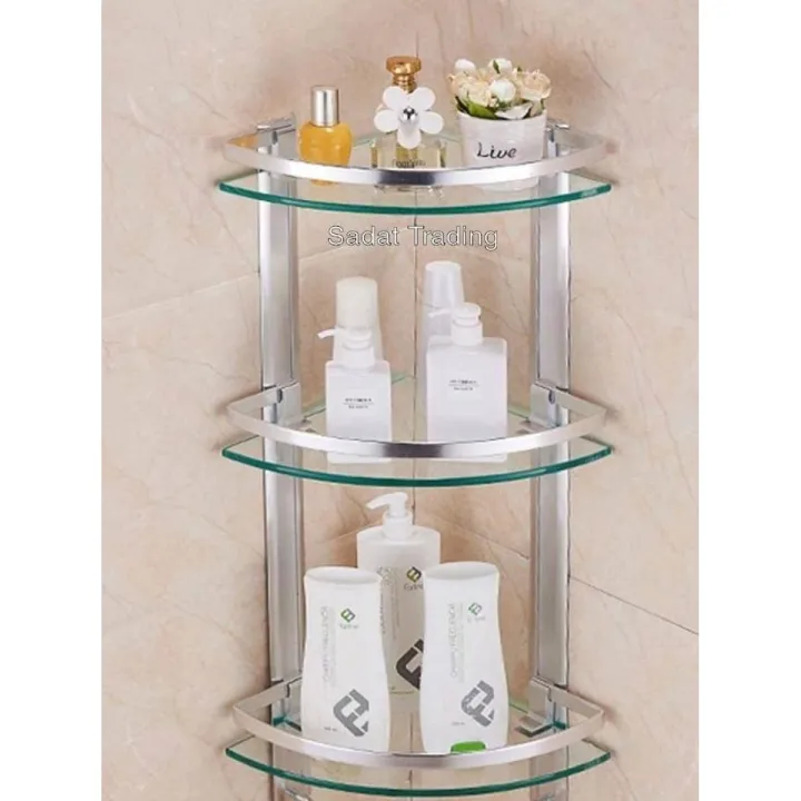 3Layer Aluminum Bathroom Corner Shelve/ Bathroom 3 layer glass corner shelves - bathroom corner shelf